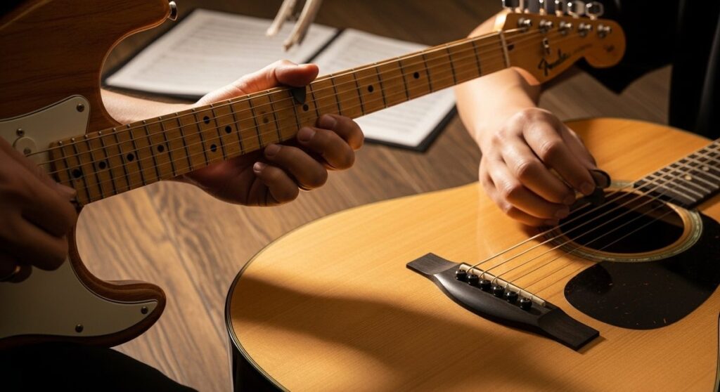 ギターのカッティングは音を短く切る奏法でリズムの印象を左右します。右手の刻み方と左手のミュートで音の長さと切れ味が決まる点を紹介します。基礎からリズムパターン、練習法、音作りまで今日から使えるコツをまとめました。 -