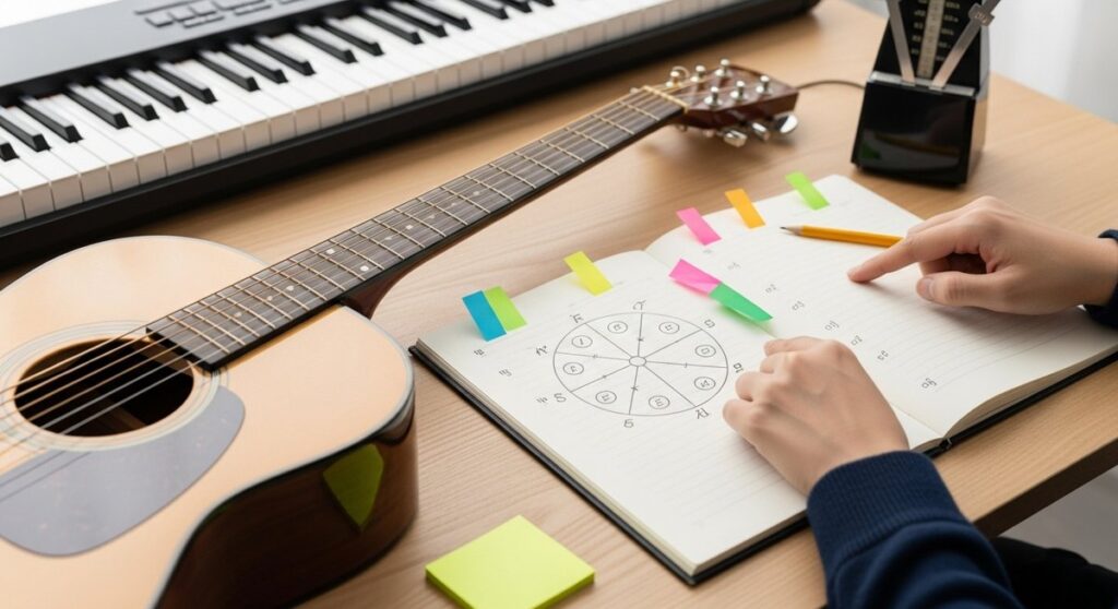和音とコードネームの覚え方をルート音と三和音の間隔メジャーとマイナー付加音の考え方で整理します。丸暗記を避け転回形や異名同音の混乱も減らし譜読み耳コピ即興のスピードを上げるコツを解説します。 -