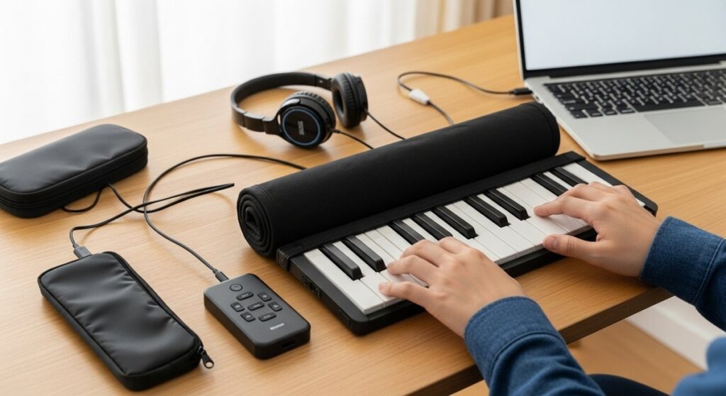 ロールピアノをおすすめしない理由を打鍵感やレスポンス同時発音数音色端子の有無から整理します。鍵盤数や駆動時間音質の比較基準も分かり練習用サブ機として失敗しないおすすめ6選の選び方が身につきます。 -