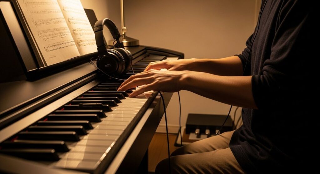 電子ピアノをヘッドホンで練習する意味を、消音の仕組みや没入感、上達につながる4つのメリットで整理します。耳の負担や打鍵音など意外な注意点も解説します。今すぐチェック。 -