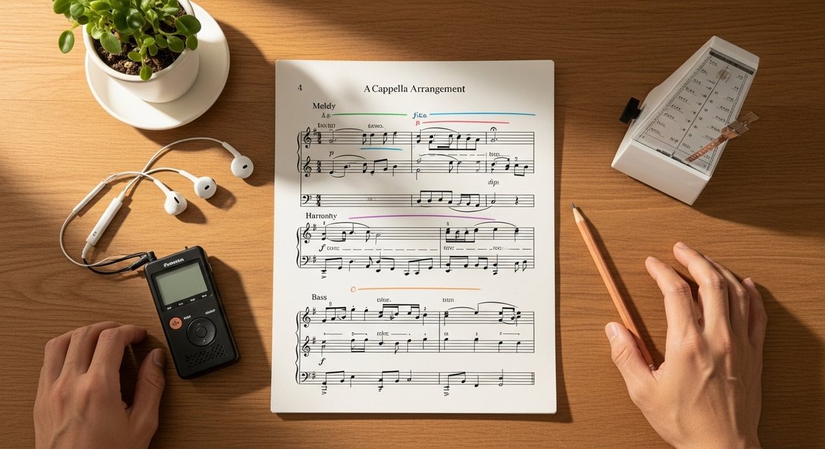 また、アカペラでは和音の分配が重要です。コードを割り振ったら、各パートがどの音を担当するかを決め、過度に複雑にならないようにすると練習効率が上がります。簡易表記でまずは全体像を作り、細部は歌いながら詰めていきます。