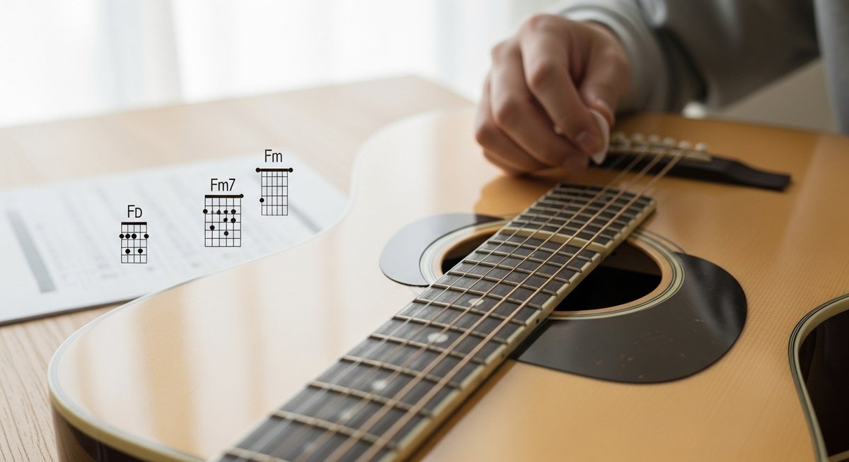 コードチェンジはストロークの安定に直結します。チェンジが多いフレーズを抜き出してゆっくり繰り返し、指の移動を最短にすることを意識してください。次のコードへ移る瞬間に音をミュートしておくと雑音が減ります。