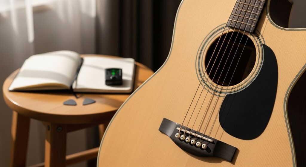 アコースティックギターを始めるために必要なアイテムを厳選して紹介します。ギター本体やチューナー、弦、ケースなど初心者がまず揃えるべきものがすぐにわかります。選び方のポイントや予算目安、あると便利な練習道具やメンテナンス法までカバーします。 -