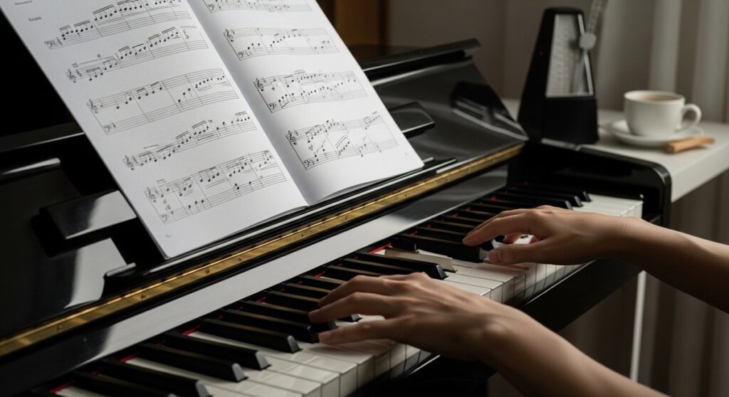 ピアノのスケールを効率よく覚えるための習慣と練習法を分かりやすく紹介します。規則や指使いのパターン化、短時間で続けるコツで丸暗記を減らせます。曲に当てて応用する方法やつまずき対策まで日々の練習に使える内容です。 -