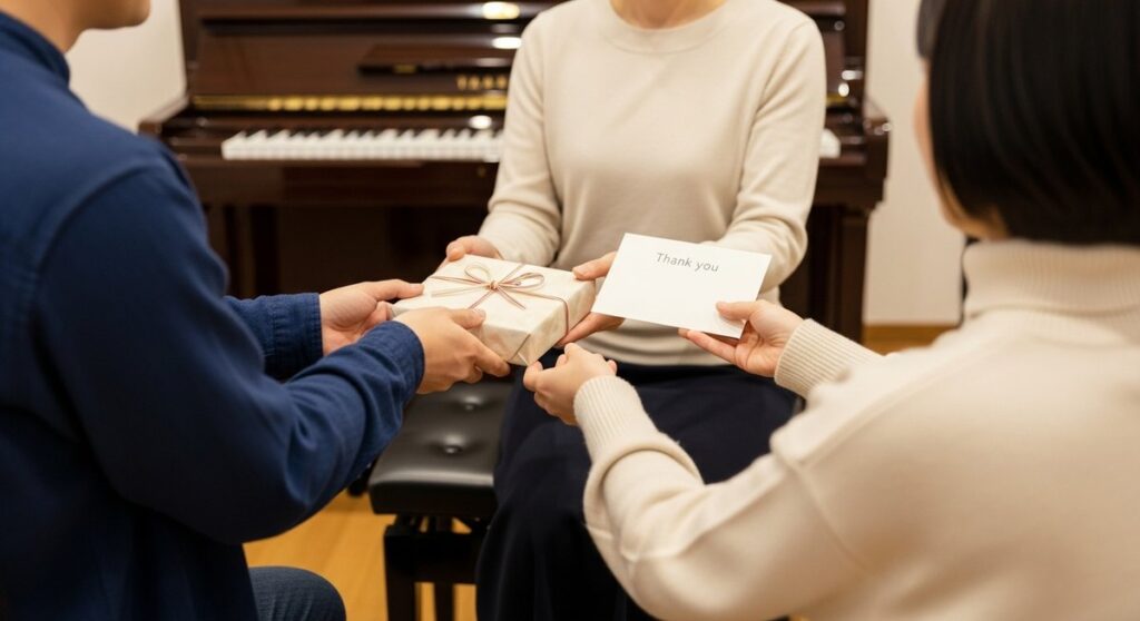 ピアノを辞めるお礼の金額は月謝1ヶ月分が目安と言われますが期間や親密度教室の慣習で変わります。菓子折りの選び方や最終レッスンでの渡し方辞退された時の対応まで円満に終えるコツを解説します。 -