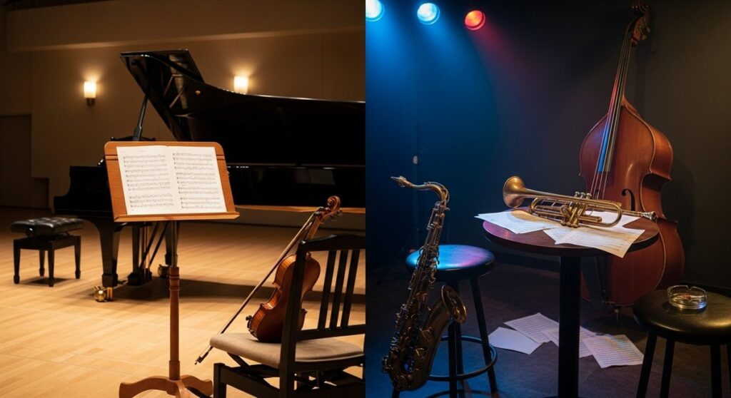 クラシックとジャズの演奏スタイルや楽譜の扱い方、リズム感の違いを分かりやすく解説します。代表曲や入門アルバムも紹介し、短時間で聴き分けるポイントを提示します。初めての人がライブや楽器選びで迷わないための具体的なアドバイスも掲載します。 -