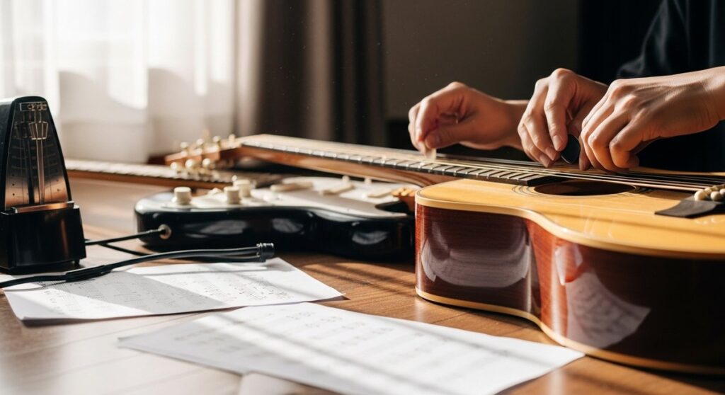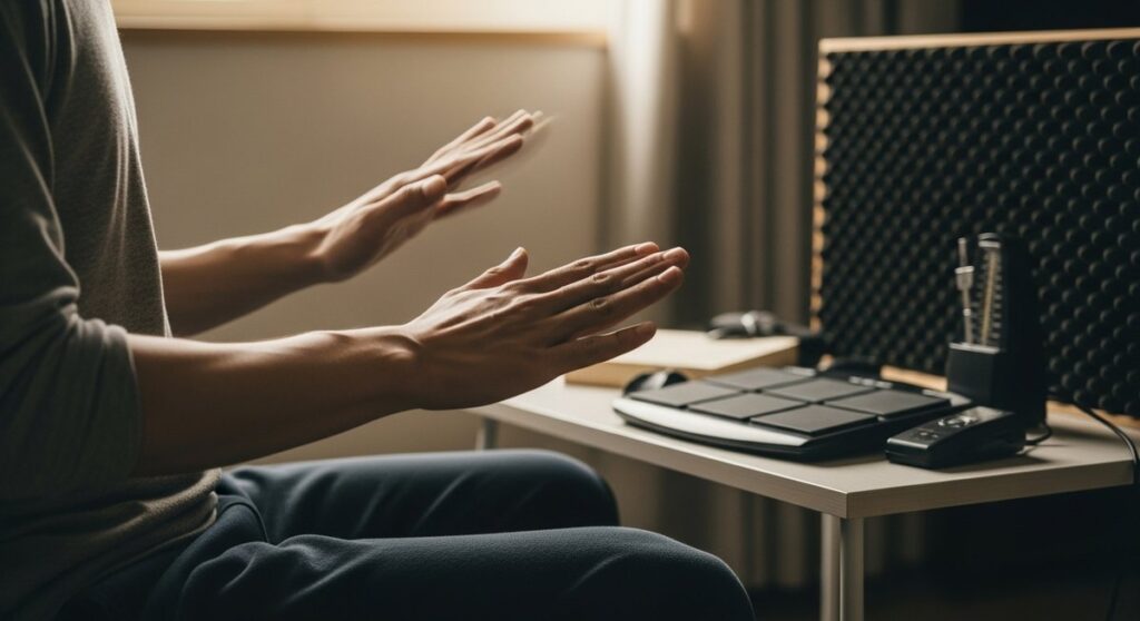 道具がなくてもドラムは上達できます。毎日短時間の習慣化とスティックだけ・エアドラム・スマホのメトロノームを活用する方法を紹介します。録音や記録で変化を確認しながら段階的に負荷を上げる計画を立てましょう。 -