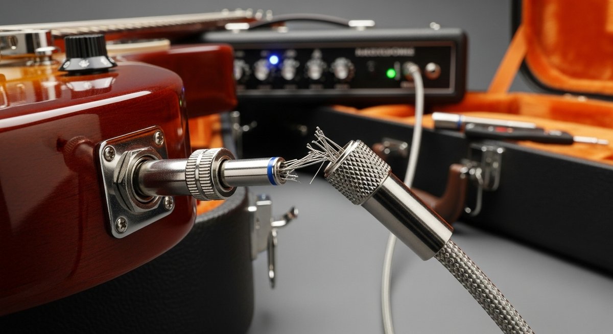 ギター側ではジャック、ポット、ピックアップ、配線などの電気系統が主な原因です。ケーブルは断線や内部接触不良、プラグの摩耗が疑われます。アンプ側は入力回路、スピーカー、電源回路の不具合などが考えられます。