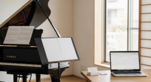 演奏中に音が急に消える場合は、親指や手首の位置が変わって他の弦を押さえている可能性があります。鏡でフォームをチェックすると原因が分かりやすくなります。