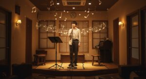 練習曲を選ぶ際は、自分の目指す声や音域に合った曲を選ぶことが大切です。無理に高すぎる曲を選ぶと声を痛めることがあるため、最初はミディアムテンポでメロディがシンプルな曲をおすすめします。