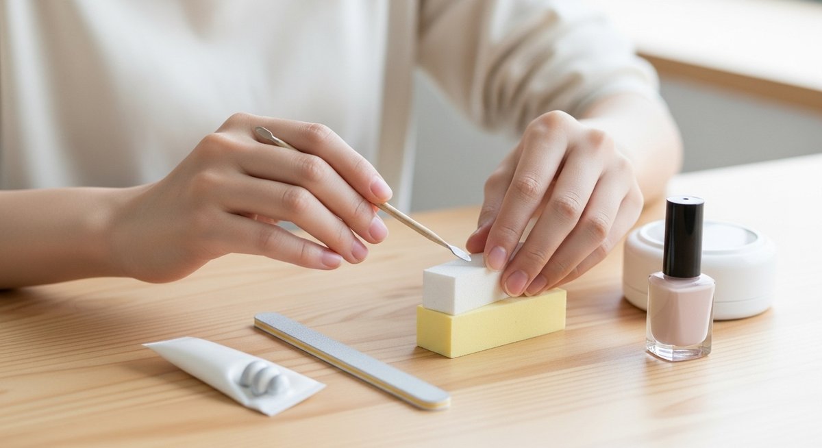 甘皮まわりは無理に切らず、入浴後や爪を柔らかくした状態で軽く押し上げるか、専用のプッシャーで整えます。爪の表面は軽く磨くとツヤが出て清潔感が増します。ネイルオイルや保湿クリームを塗る習慣を取り入れると爪の乾燥が防げます。