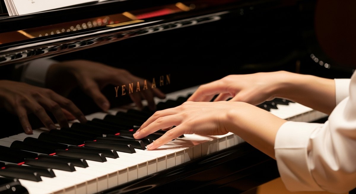鍵盤を扱うとき、無駄のない動きや落ち着いた手つきが目立ちます。初めて触る楽器でも、指の形や角度が自然でスムーズに見えるのが特徴です。これは長年の反復練習で身についた所作です。
