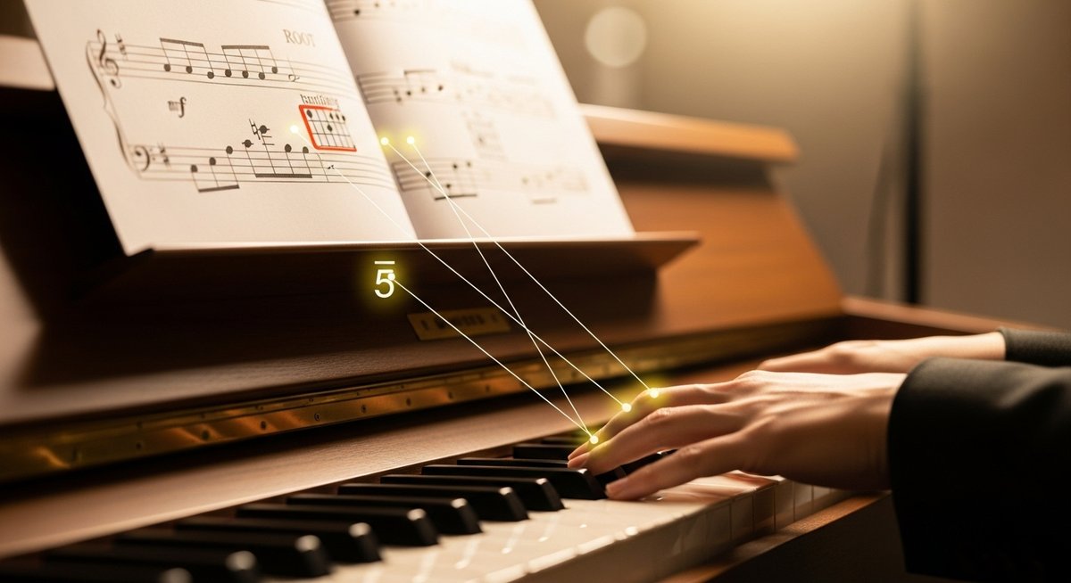 転回形を使うと片手で押さえやすくなります。例えば右手で3度・5度・7度を弾き、左手でルートを低く持つと響きが豊かになります。テンポを落として和音の残響を聴き取り、各音の役割を意識しながら繰り返すと手にも耳にも馴染みます。