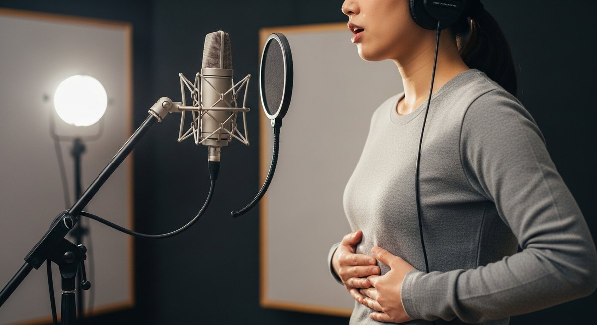 実は、私たちが普段話すときに使っている胸式呼吸では、肩や胸に力が入りやすく、声が詰まる原因になります。腹式呼吸は上半身のリラックスを促し、喉を解放した状態で声を出すための助けとなります。