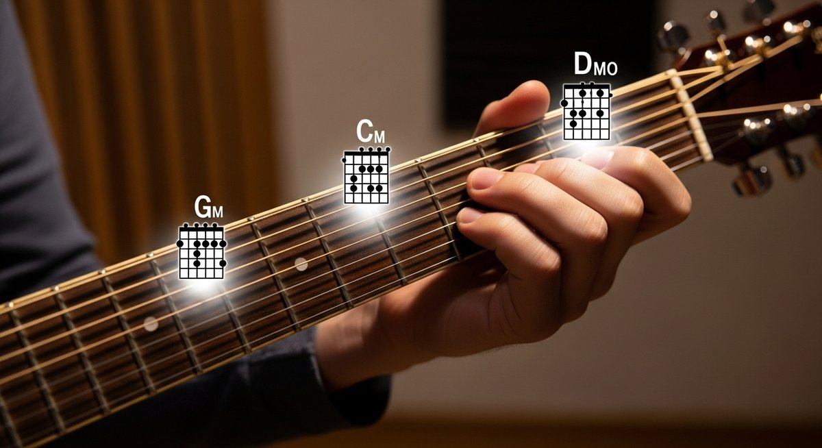 短調ではI(マイナー)、IV(マイナーまたは短調系)、V(メジャーやマイナー)を組み合わせて哀愁のある進行が作れます。短調特有の第三音の違いを活かすと曲に深みが出ます。
