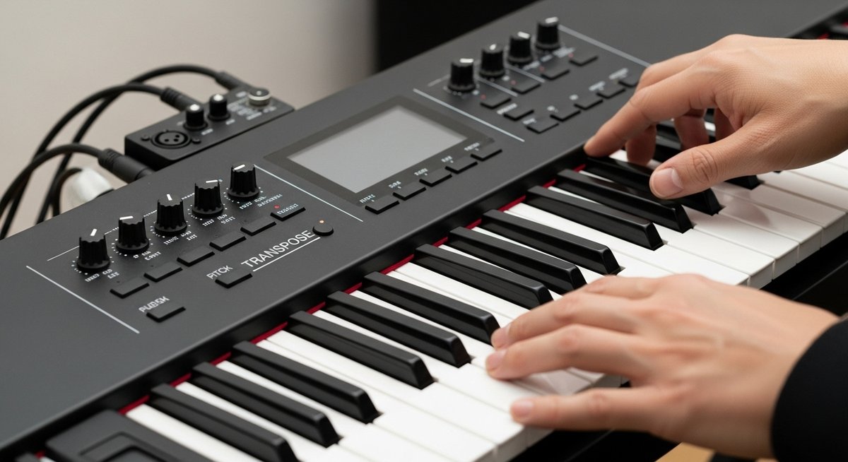 ボタンを一つ押すだけで、難しい調(シャープやフラットが多い曲)を、弾きやすいハ長調(白い鍵盤中心の曲)の指使いで演奏できるようになります。これは特に、現場での即興性が求められる演奏シーンにおいて、計り知れない価値を発揮します。